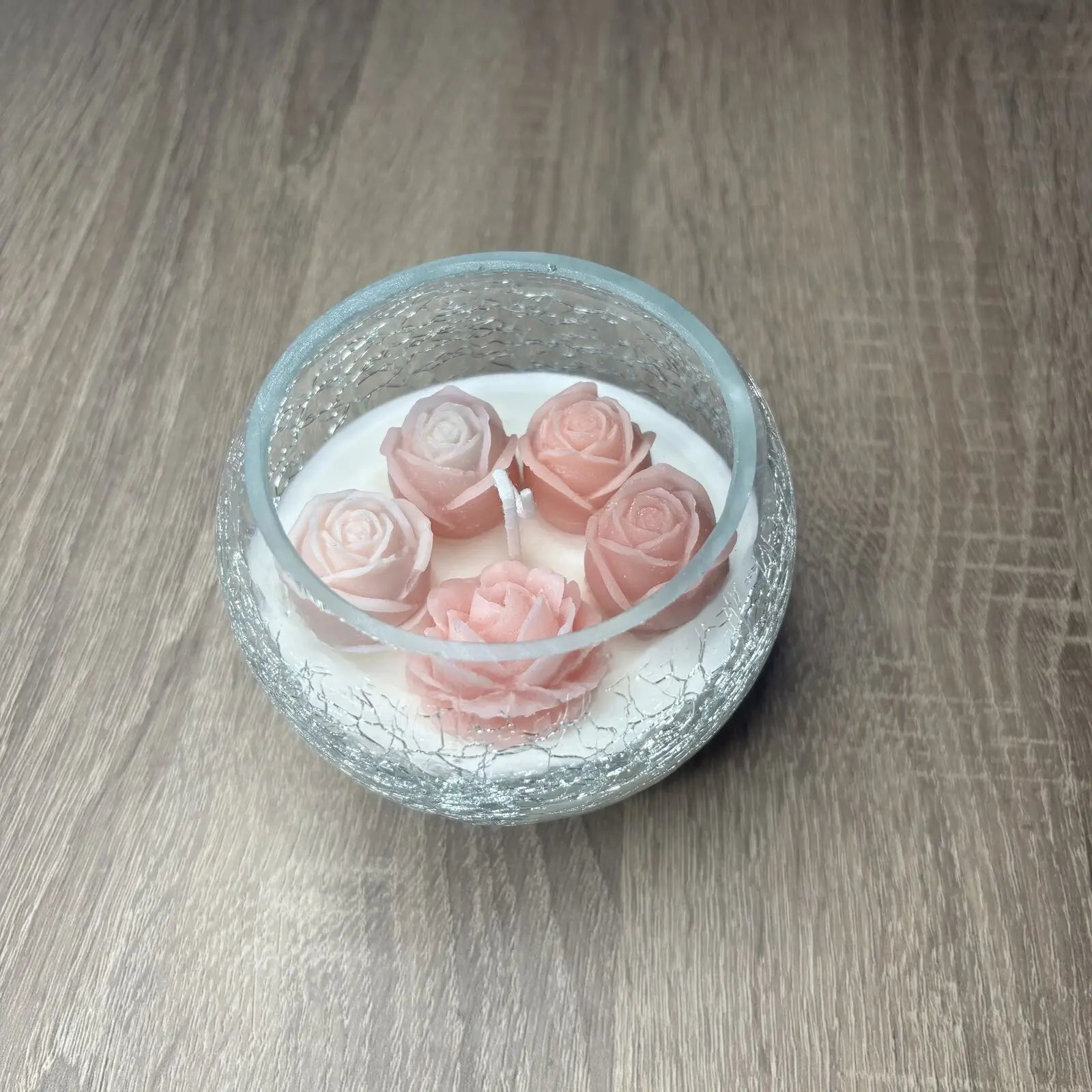 A TrixiGlow Rózsa Gömb gyertyája egy roppantott üvegedényben elhelyezett, csodaszép rózsakompozícióval minden otthont eleganciával tölt meg.